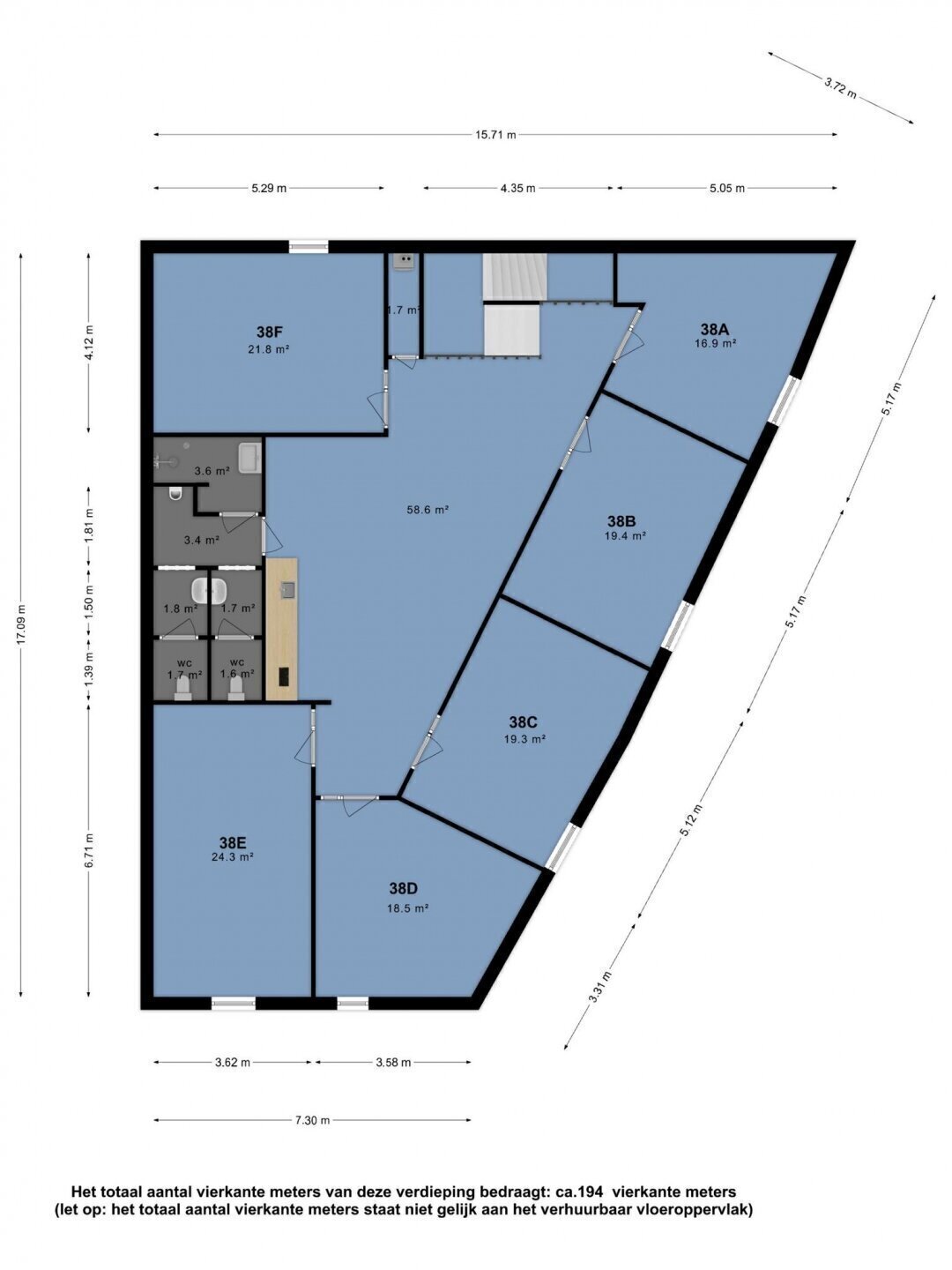 - Oppervlakte kantoor ca. 44 m2