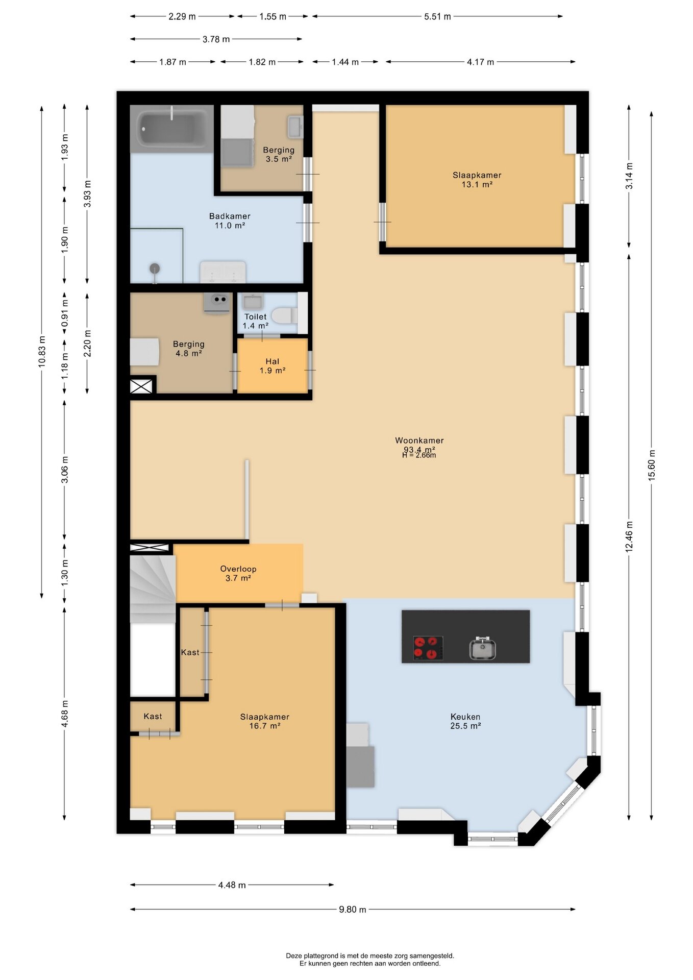 - 3 aparte opbergruimtes