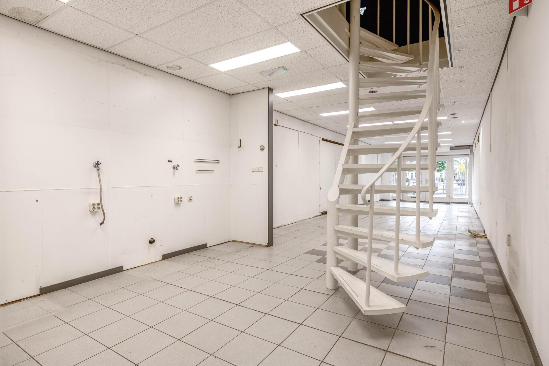 De winkelruimte op de begane grond is diep (ca. 18 meter) en praktisch ingedeeld met systeemplafond, tegelvloer, airco-unit en een brede entree met dubbele glazen deuren en vitrines. Achter in het pand bevindt zich een pantry/keuken, toilet en extra opslagruimte. Een vaste spiltrap leidt naar de eerste verdieping. Hier vind je een royale ruimte van ca. 40 m², ideaal als kantoor, opslag of magazijn, met toegang tot een groot dakterras van ruim 40 m², een verrassende extra. Op de tweede verdieping bevindt zich een zolderruimte met stahoogte (2,00 m in de nok), wat extra opslagmogelijkheden biedt. De totale netto gebruiksoppervlakte van het object bedraagt circa 156 m².