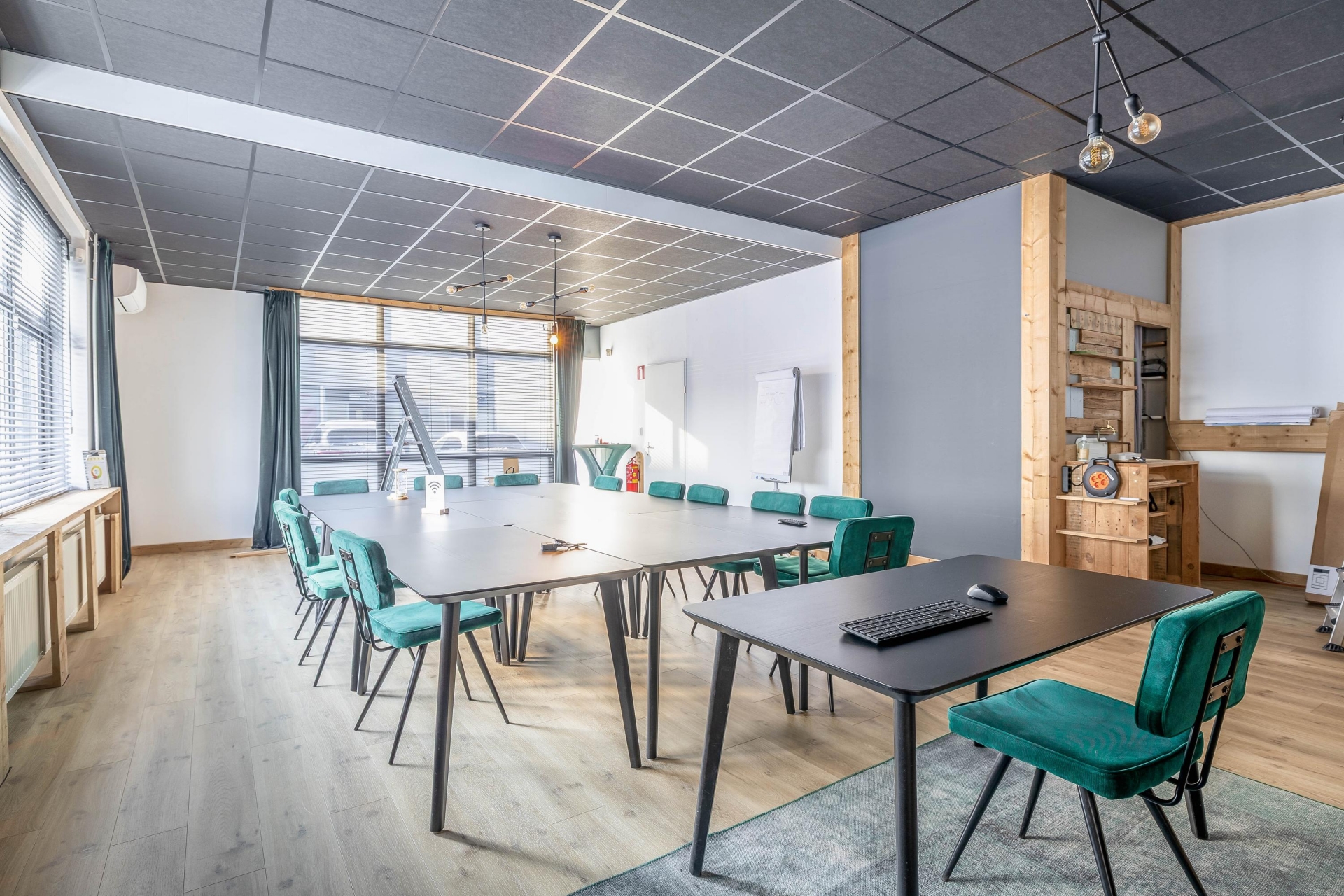 - verdieping voorzien van systeemplafond met tl-armaturen.