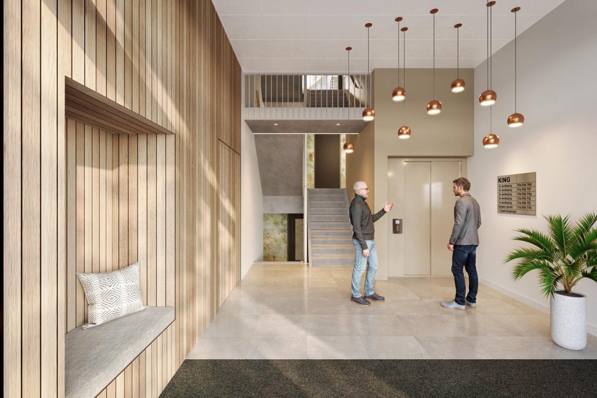 Gebouw KING ligt op de rand van park Natuurlijk Centrum Zuid, nabij het winkelcentrum. Door de getrapte opbouw reageert het gebouw zowel op het park als op het plein. Deze stoere sluitsteen van de gebiedsontwikkeling krijgt getrapte terrassen aan het park op het zuiden. Dit duurzame gebouw is opgetrokken in metselwerk, afgewisseld met houten geveldelen. Een toplocatie op loopafstand van het winkelcentrum en overige voorzieningen, centraal gelegen in Krimpen aan den IJssel.